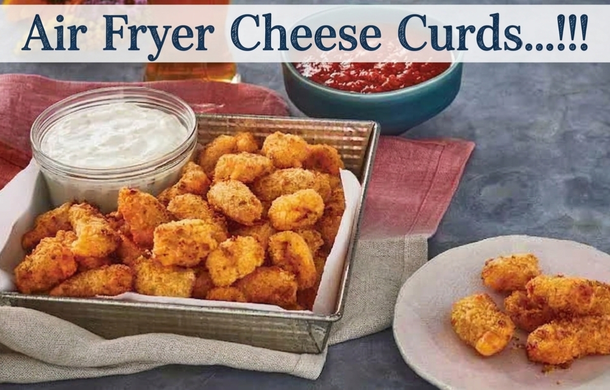 Hot air fryer cheese curds! The breading is wonderful and crunchy!