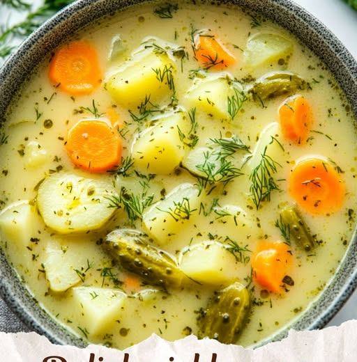 Combine: Once the potatoes are soft, add the grated pickles and the pickle brine to the pot. Simmer for another 5–10 minutes.