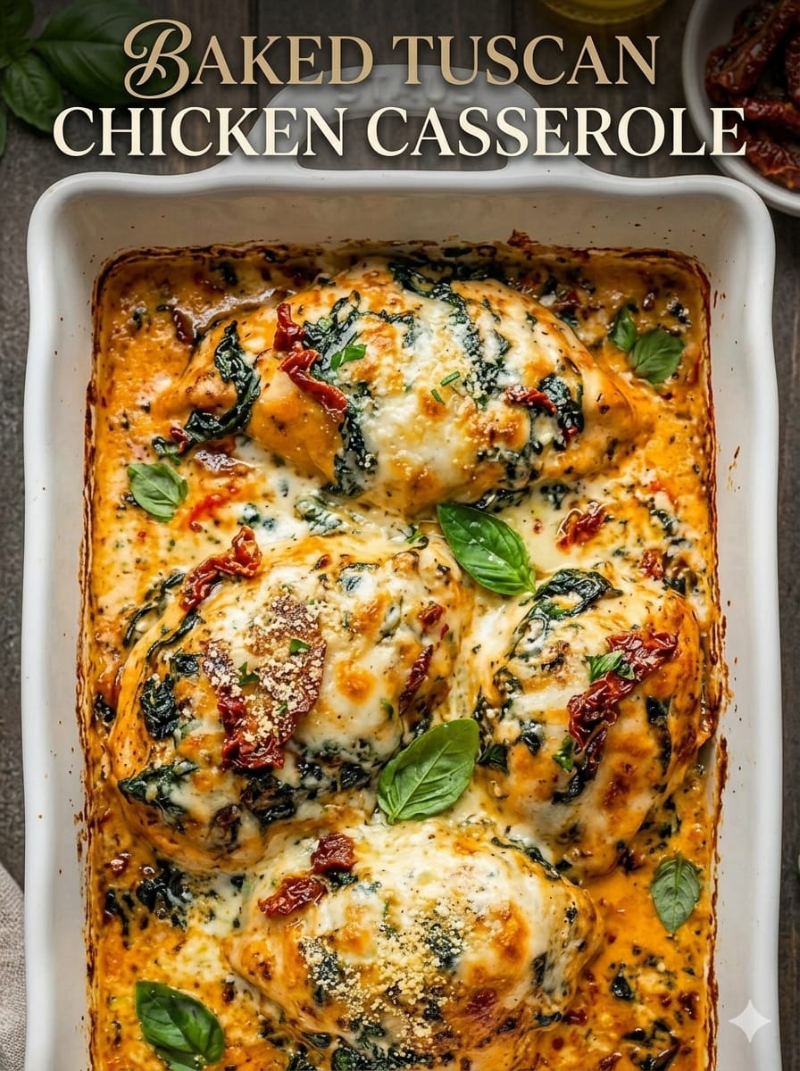Baked Tuscan Chicken Casserole is a rich, creamy, and deeply satisfying dish that brings restaurant-quality flavor to your home kitchen. With tender chicken, sun-dried tomatoes, spinach, and a luxurious cheese sauce, it’s comfort food at its finest. Easy to prepare and perfect for family dinners or meal prep, this casserole is a reliable favorite you’ll want to make again and again.