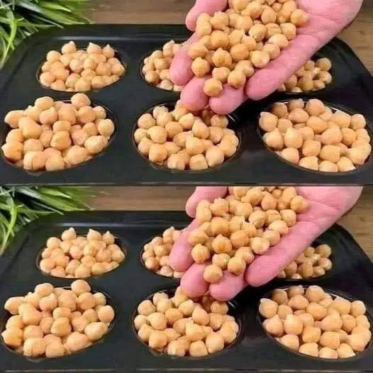 3. Place chickpeas into a muffin tray (like in the image) to keep them separated and evenly roasted.