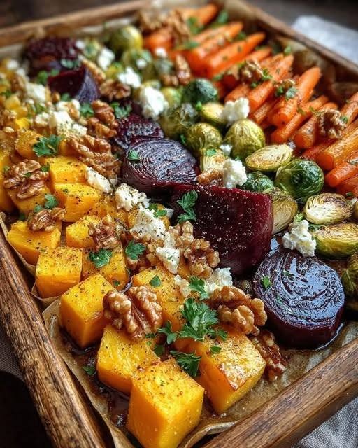 🥗 Caramelized Brussels Sprouts, Sweet Potato, Butternut Squash, Carrot & Beet Medley with Feta, Toasted Walnuts & Hot Honey Drizzle