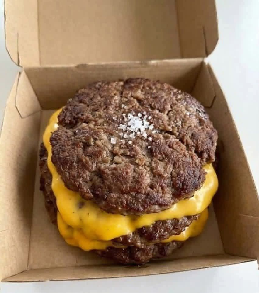 This bunless carnivore burger uses crispy beef patties as both the top and bottom “bun,” layered with gooey melted cheddar in between. It’s juicy, salty, fatty, and incredibly satisfying.