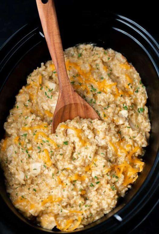 Cheesy Slow Cooker Chicken and Rice Casserole