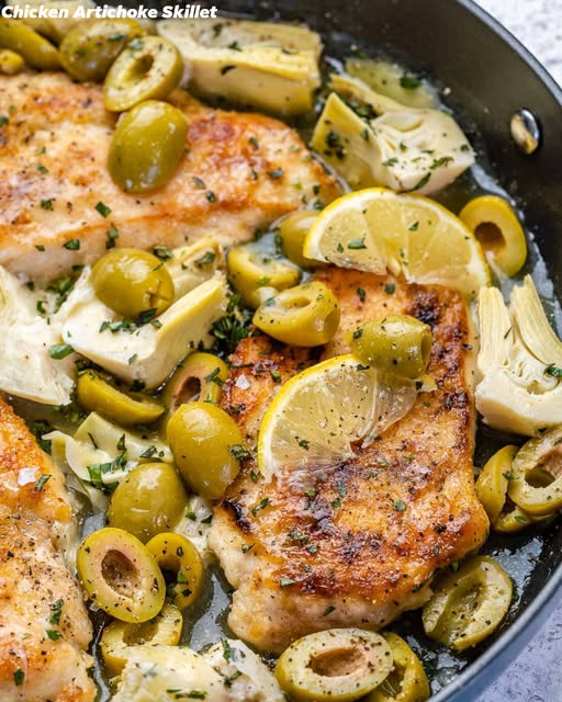 Chicken Artichoke Skillet is a Mediterranean-inspired recipe where seared chicken breasts (or thighs) are simmered with artichoke hearts, garlic, herbs, and a creamy or light wine-based sauce. The result is juicy chicken infused with bright, slightly tangy flavors and a comforting, velvety texture.