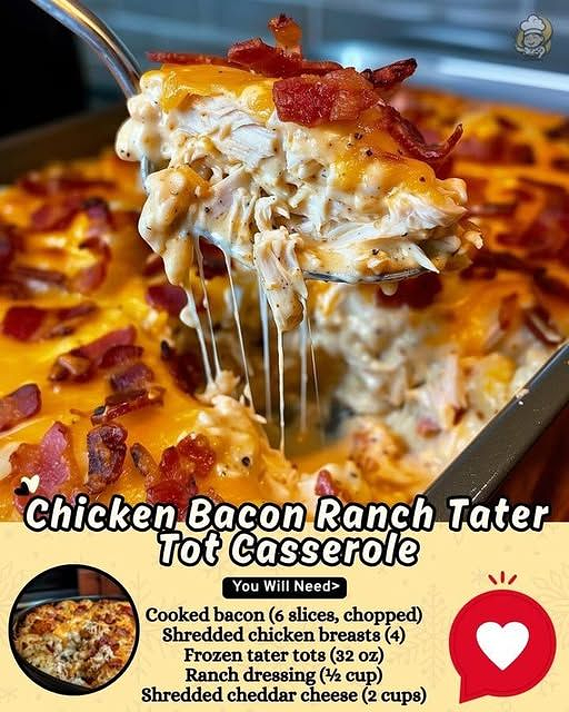 This Chicken Bacon Ranch Tater Tot Casserole is the ultimate comfort food. Crispy tater tots on top of a creamy, cheesy chicken and bacon filling make this dish irresistible. Perfect for a hearty weeknight dinner, potluck, or anytime you need a cozy, crowd-pleasing meal. With the creamy ranch flavor, savory chicken, and salty bacon, every bite is packed with flavor and texture.