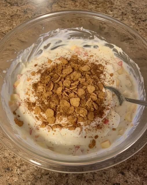 A creamy, protein-packed yogurt bowl layered with fresh apples, warm cinnamon spice, and crunchy cereal or granola. Perfect for breakfast, a post-workout snack, or a light dessert.