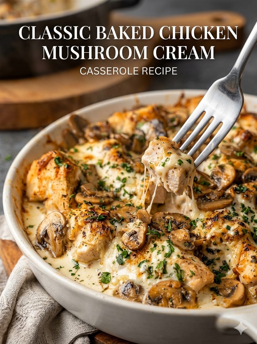Classic baked chicken mushroom cream casserole is a rich, comforting dish that brings together tender chicken, earthy mushrooms, and a creamy, cheesy sauce in one satisfying bake. It’s simple enough for a weeknight but impressive enough for guests. With its flexible ingredients and easy customization options, it’s the kind of recipe that easily becomes a regular in your kitchen rotation.