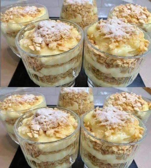 Layering (The Build): * Place a layer of crushed vanilla wafers at the bottom of each glass.