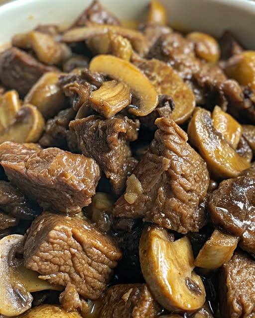 Pour & Stir: Pour the mixture over the beef and mushrooms. Stir gently to coat.