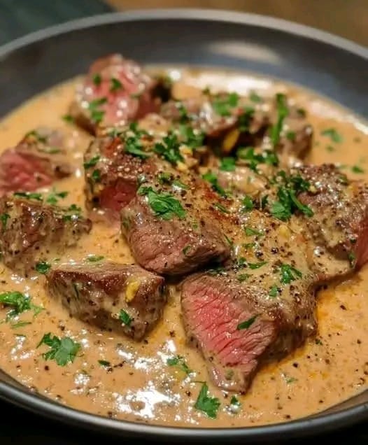 These Creamy Garlic Steak Bites are tender, juicy cubes of steak seared to perfection and tossed in a luscious, garlicky cream sauce. The sauce, made with butter, garlic, Parmesan cheese, and a touch of cream, coats every piece for an indulgent yet easy-to-make dinner. Think of it as steakhouse flavor meets weeknight simplicity — rich, comforting, and perfect with mashed potatoes, rice, or pasta.