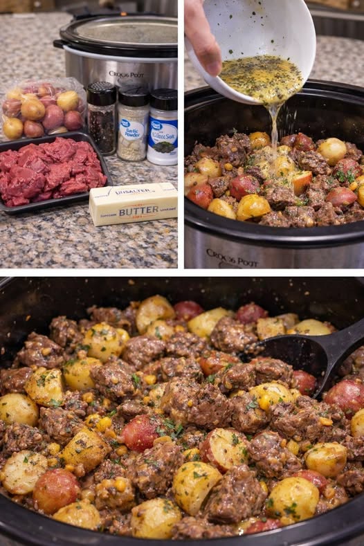 🥩 Crockpot Garlic Butter Beef Bites & Potatoes
