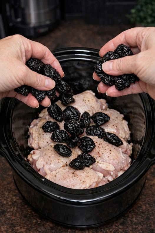 Add Fruit: Evenly scatter the prunes over the chicken pieces.