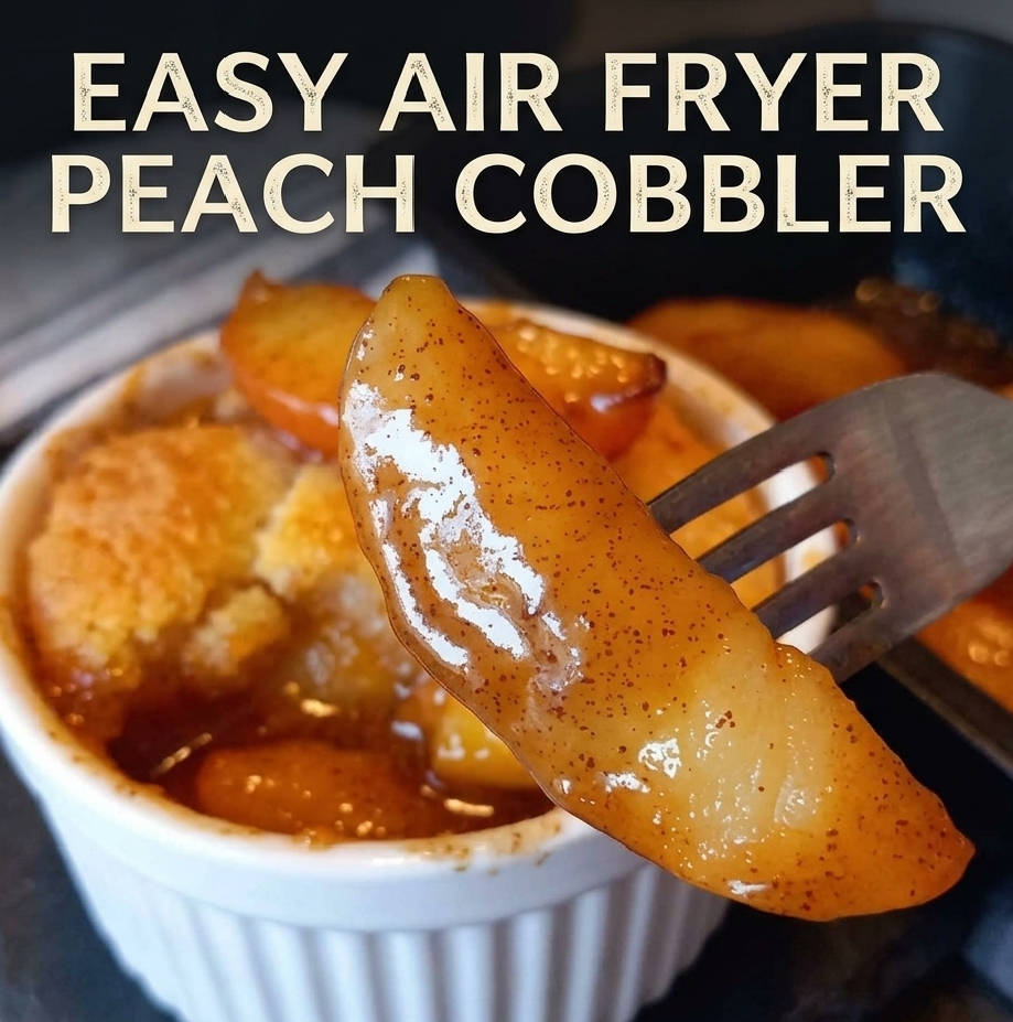 The ideal simple dessert is this peach cobbler made in an air fryer. The entire family will like it when served in individual portions!
