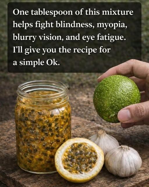 This powerful natural tonic is designed to support eye health, combat myopia, reduce eye fatigue, and improve blurry vision. It combines antioxidant-rich passion fruit, vitamin C from lime, and immune-boosting compounds from garlic. A tablespoon daily may help maintain eye wellness as part of a healthy diet.