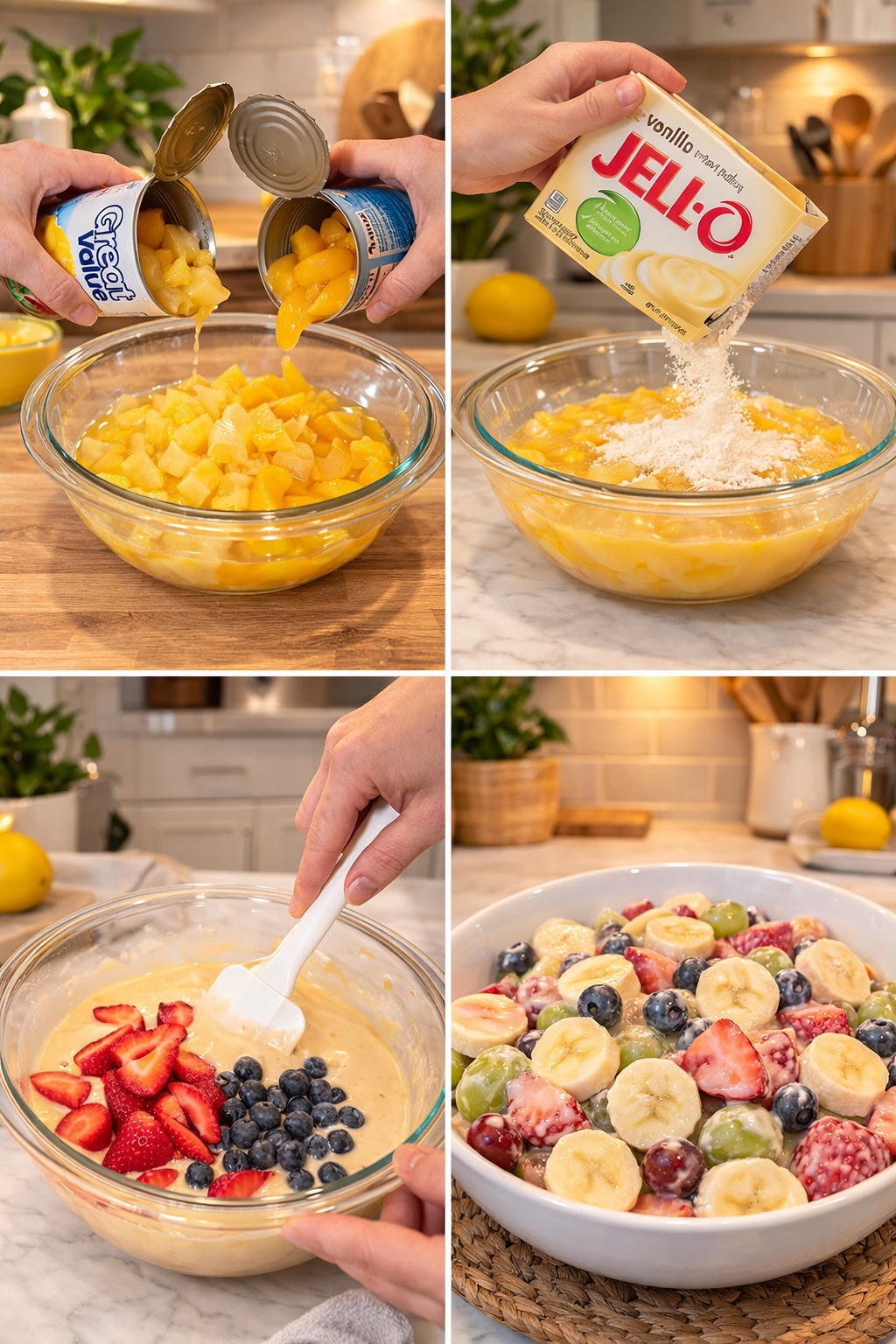 A colorful, juicy bowl of goodness, this fruit salad is refreshing, naturally sweet, and perfect for breakfast, a snack, or a healthy dessert. It’s loaded with vitamins, fiber, and antioxidants, making it a quick way to boost your energy and mood.