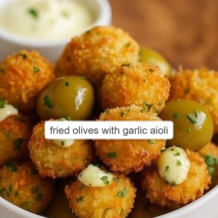 Fried Olives with Garlic Aioli are a crispy, salty, and irresistible appetizer that feels gourmet but is surprisingly easy to make. Juicy olives are coated in a crunchy breadcrumb crust and fried until golden, then served with a rich, creamy garlic aioli for dipping. The contrast of textures—crispy outside, briny inside—paired with the smooth garlicky sauce makes this dish perfect for parties, tea-time snacks, or as a unique starter.