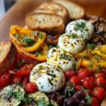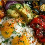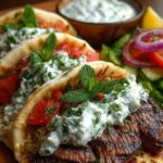 This dish combines juicy, marinated grilled chicken (souvlaki-style) with fresh Mediterranean ingredients like cucumbers, tomatoes, olives, and a creamy roasted red pepper feta sauce. Served over rice, quinoa, or greens, it’s a vibrant, protein-rich bowl packed with bold Greek flavors.