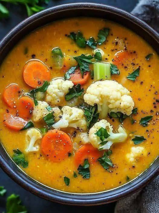 Healing Turmeric Vegetable Soup with Cauliflower, Carrots & Celery