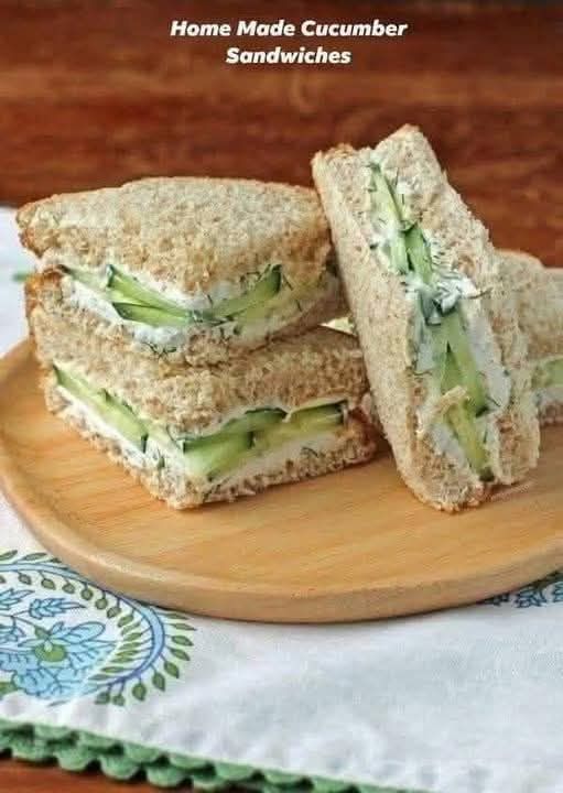 Home-made cucumber sandwiches are light, refreshing, and classic finger sandwiches traditionally served at afternoon tea. Made with crisp cucumbers, soft bread, and a creamy spread, they are perfect for summer lunches, tea parties, picnics, or quick healthy snacks. Their mild flavor, cooling nature, and elegant presentation make them timeless and versatile.