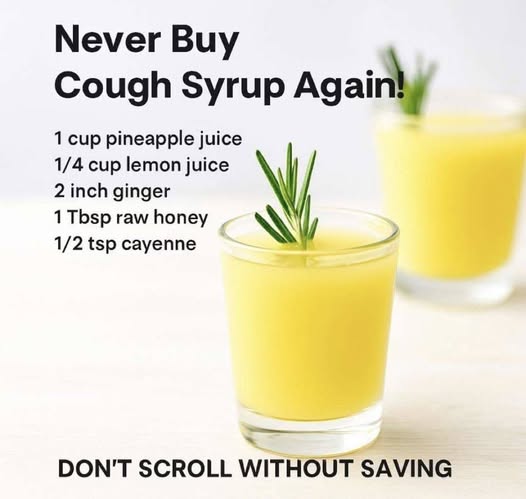 This homemade cough relief drink combines pineapple juice, lemon juice, ginger, honey, and cayenne pepper—ingredients traditionally used to soothe the throat, support mucus breakdown, and provide warming relief. It’s best suited for mild coughs related to colds, throat irritation, or congestion.