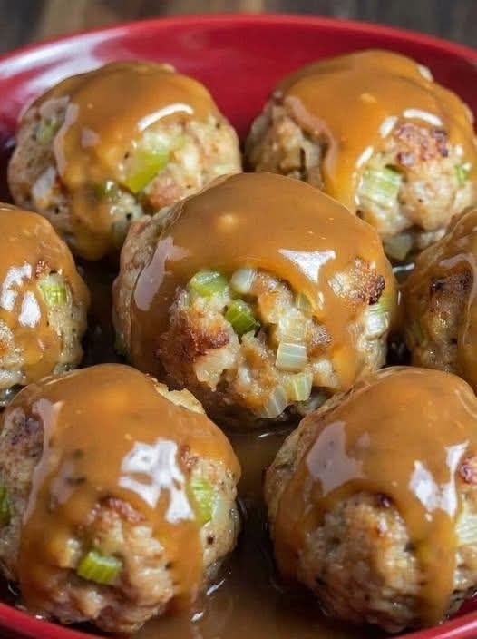 Serve the meatballs hot with the rich, savory gravy poured over them. You can serve it with mashed potatoes, rice, or vegetables for a complete meal.
