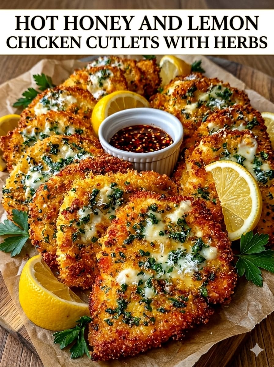 This dish brings together crispy, golden chicken cutlets with a bold combination of sweet heat and fresh citrus. The crunchy herb-Parmesan coating locks in juiciness, while the hot honey lemon element adds a perfect balance of spicy, tangy, and slightly sweet flavor. Whether you choose the glossy glaze or the creamy feta-based sauce, this recipe delivers a restaurant-quality meal at home. It’s quick enough for a weeknight but impressive enough for guests.