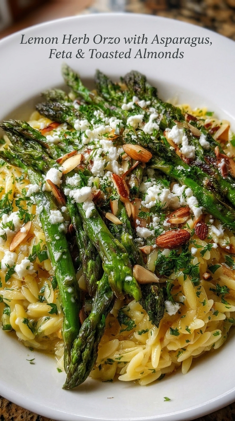 🍋 Lemon Herb Orzo with Asparagus, Feta & Toasted Almonds