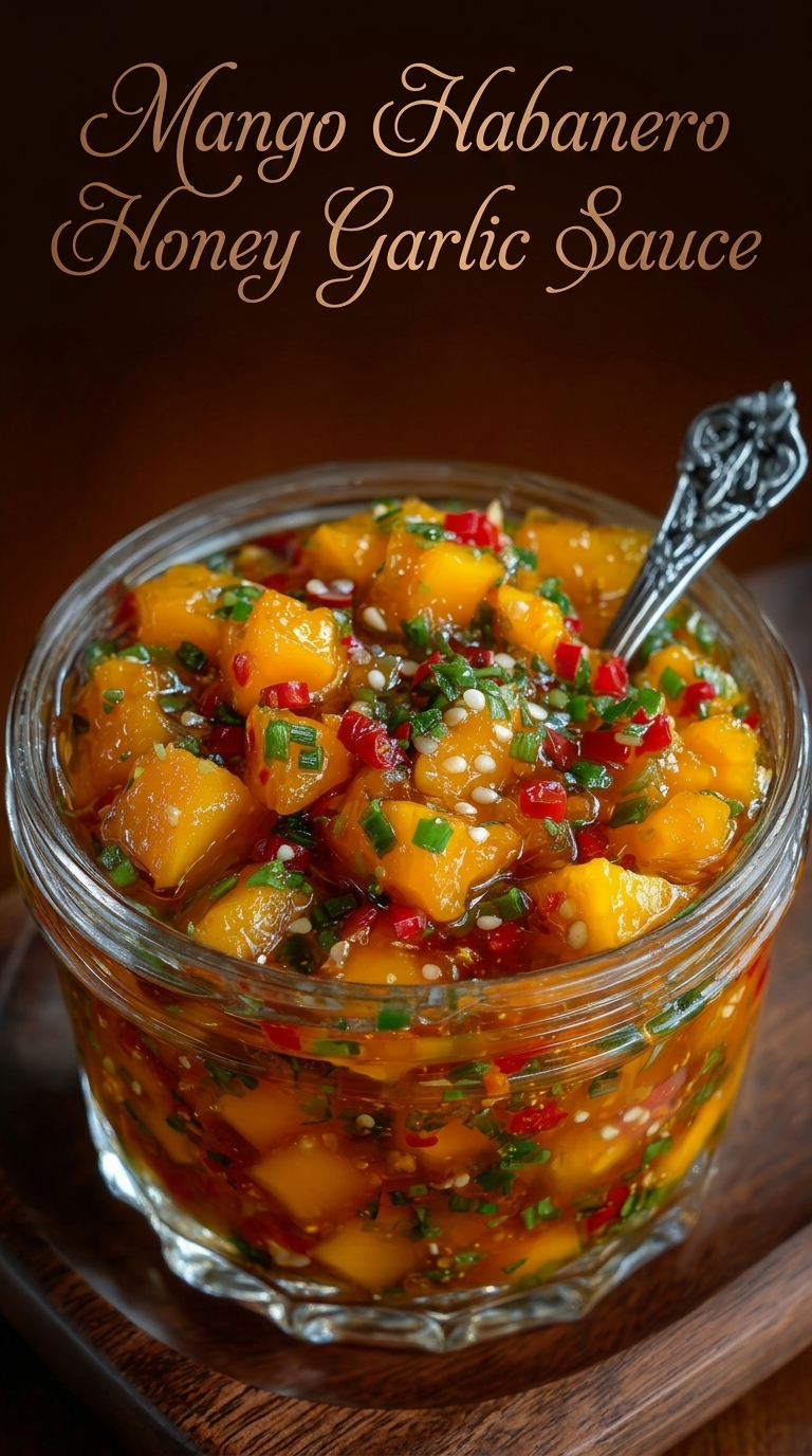 This sauce is a bold fusion of sweet mango, fiery habanero heat, rich honey, and savory garlic. It’s sticky, glossy, and intensely flavorful—perfect as a glaze, dipping sauce, or marinade for chicken, wings, shrimp, grilled meats, or even roasted vegetables.