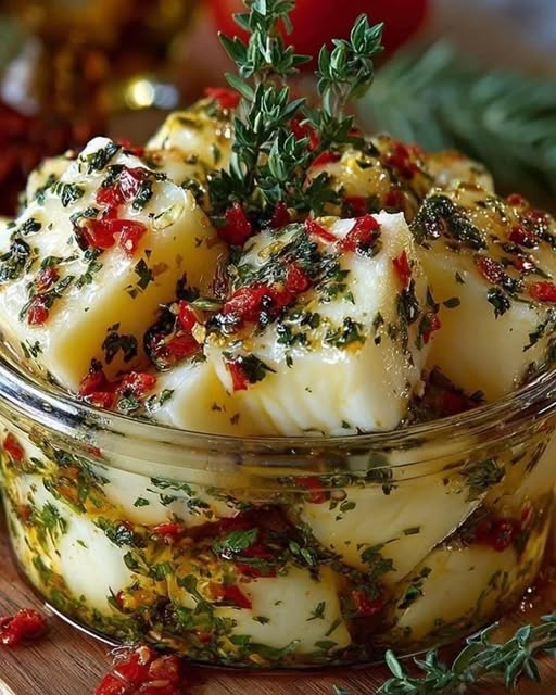 This Marinated Cheese Delight is a simple yet sophisticated Mediterranean appetizer that transforms plain feta or mozzarella into a flavor-packed treat. Cubes of creamy cheese soak up a blend of olive oil, balsamic vinegar, garlic, herbs, and spices, resulting in a rich, tangy, and aromatic bite.