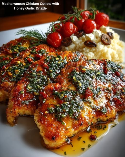 🥘 Mediterranean Chicken Cutlets with Honey Garlic Drizzle