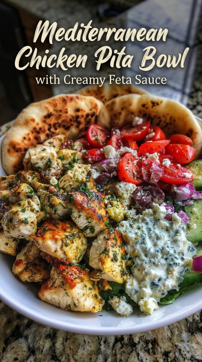 Mediterranean Chicken Pita Bowl with Creamy Feta Sauce
