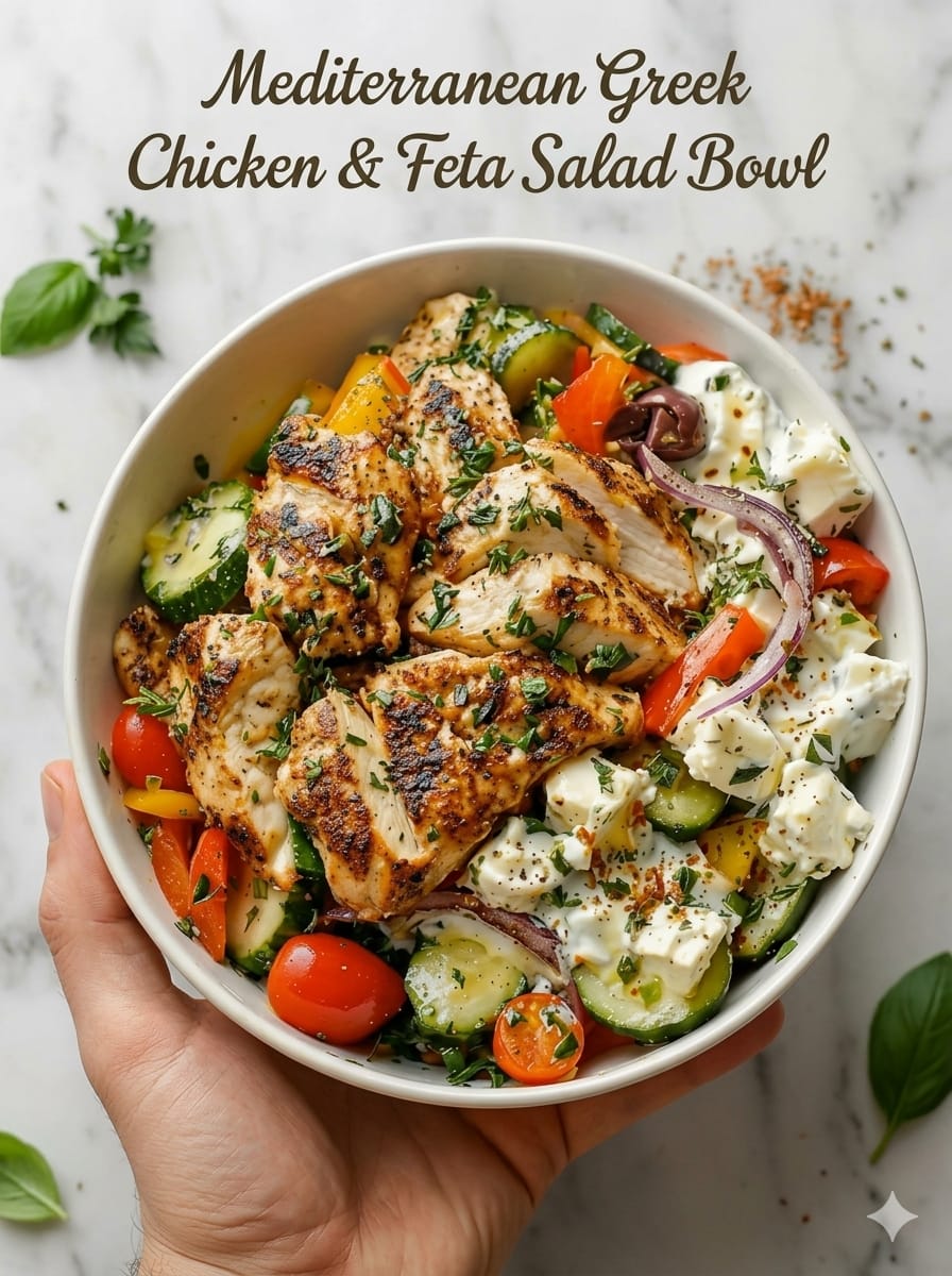 Mediterranean Greek Chicken & Feta Salad Bowl is a vibrant, wholesome dish that combines juicy marinated chicken with crisp vegetables and classic Greek flavors. It’s easy to prepare, highly customizable, and perfect for both healthy eating and satisfying meals. Every bite delivers freshness, protein, and Mediterranean comfort in a single bowl.