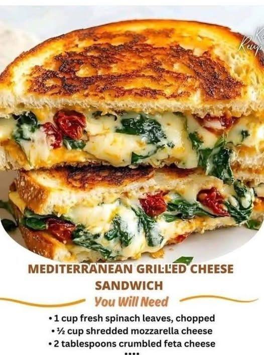 A flavorful twist on the classic grilled cheese, this Mediterranean-inspired version combines creamy cheeses, tangy sun-dried tomatoes, and fresh spinach for a savory, melty sandwich packed with vibrant flavor.