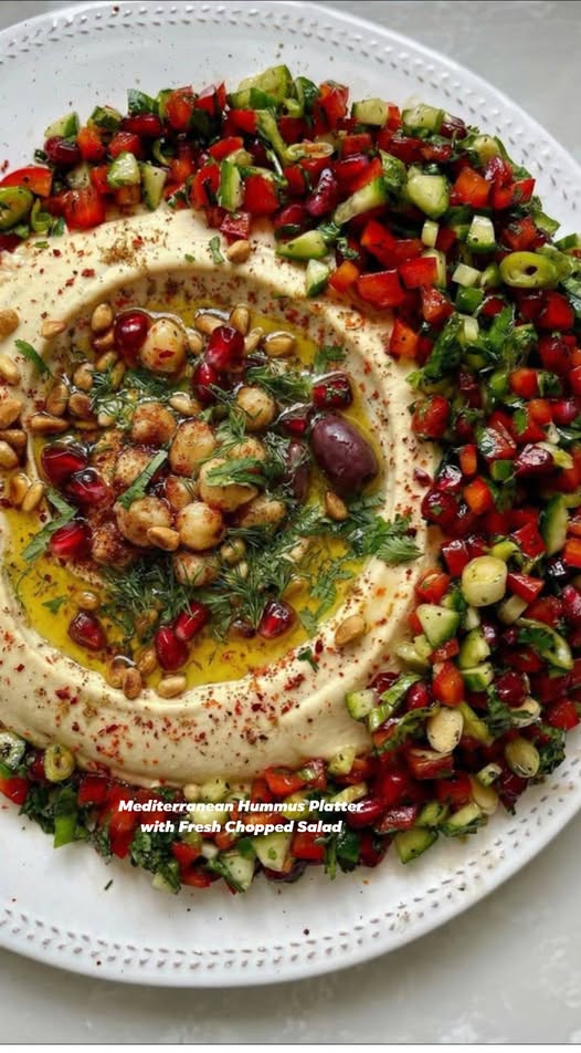 Mediterranean Hummus Platter with Fresh Chopped Salad