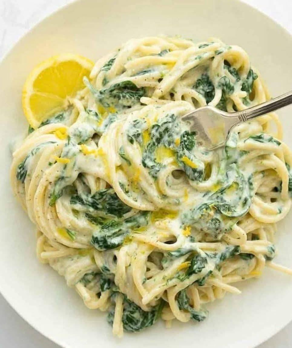 Mediterranean Lemon–Spinach Creamy Linguine