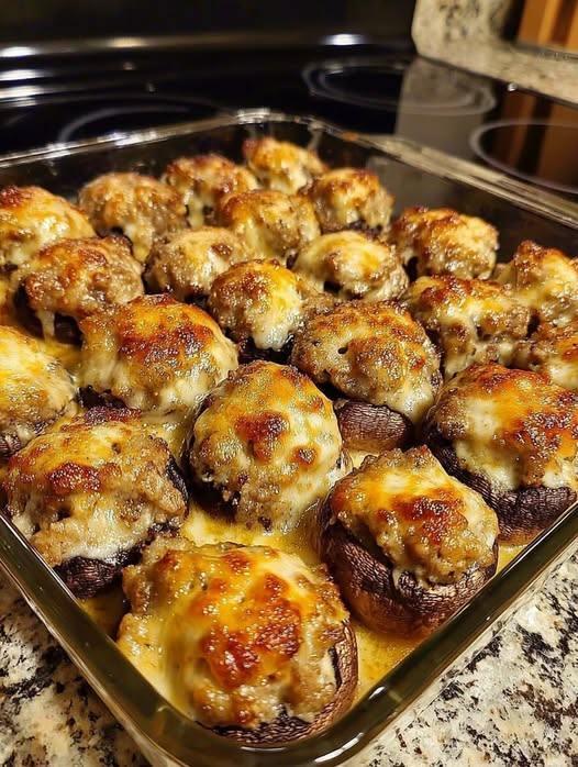 🍄 Mediterranean Stuffed Mushrooms with Herbed Sausage & Cheese