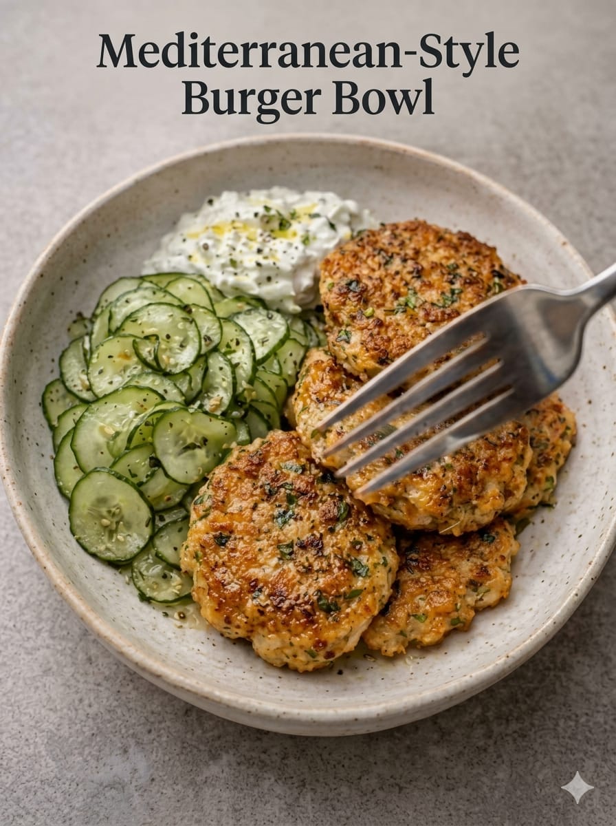 Mediterranean Style Burger Bowl is a fresh, wholesome twist on the classic burger, swapping buns for a vibrant bowl packed with flavor and texture. Juicy turkey patties are seasoned with herbs and spices, paired with a crisp cucumber salad, and finished with a creamy, tangy tzatziki sauce. This dish is light yet satisfying, making it perfect for a healthy lunch or dinner. It’s also naturally low-carb and easy to customize to your taste.