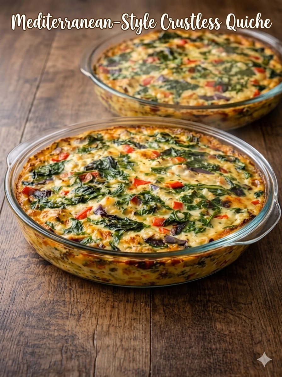 Light, flavorful, and packed with wholesome ingredients, this Mediterranean-style crustless quiche is a perfect balance between healthy and satisfying. Skipping the crust keeps it lower in carbs while allowing the vibrant flavors of vegetables, herbs, and cheeses to shine. With creamy eggs, tangy feta, and colorful vegetables like spinach and bell peppers, this dish works beautifully for breakfast, brunch, or even a light dinner. It’s simple to prepare, easy to customize, and great for meal prep.