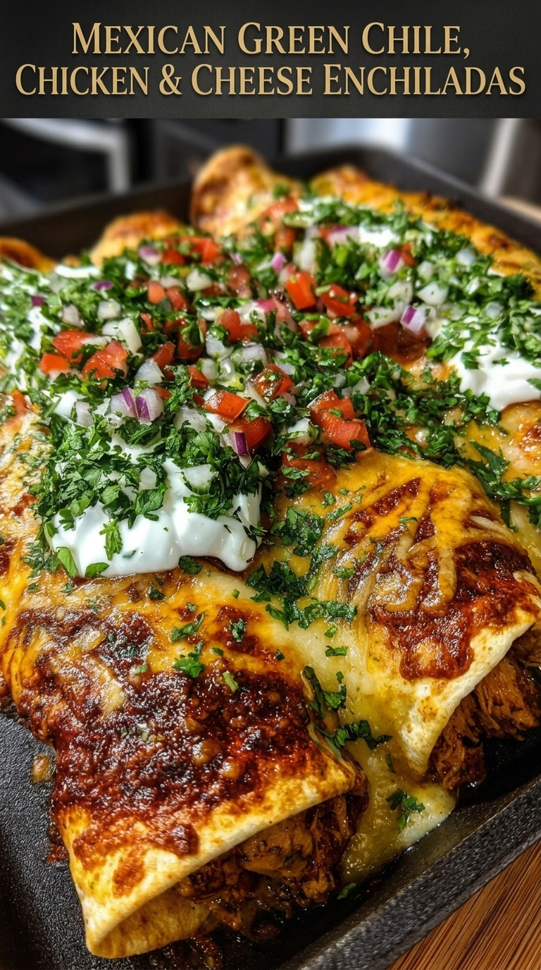🌮 Mexican Green Chile, Chicken & Cheese Enchiladas