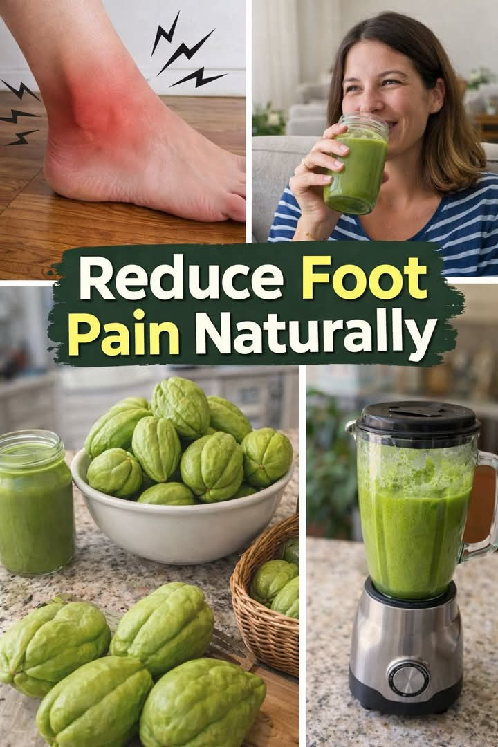 This green smoothie features chayote squash, a hydrating, mineral-rich vegetable traditionally used in natural remedies for inflammation and joint discomfort. Combined with pineapple, ginger, lemon, and spinach, it creates a nutrient-dense drink that may help reduce inflammation, support circulation, and ease mild foot pain when paired with a healthy lifestyle.