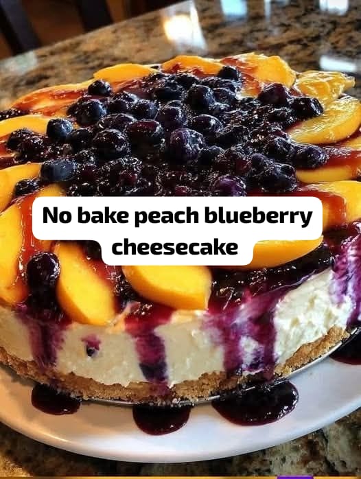 This No-Bake Peach Blueberry Cheesecake is the ultimate summer dessert—light, creamy, and bursting with fresh fruit flavor. With a buttery biscuit base, silky smooth cream cheese filling, and a vibrant peach-blueberry topping, it looks stunning without ever turning on the oven.Perfect for hot days, family gatherings, or when you want an elegant dessert with minimal effort, this cheesecake sets beautifully in the fridge and delivers a refreshing, fruity bite every time.