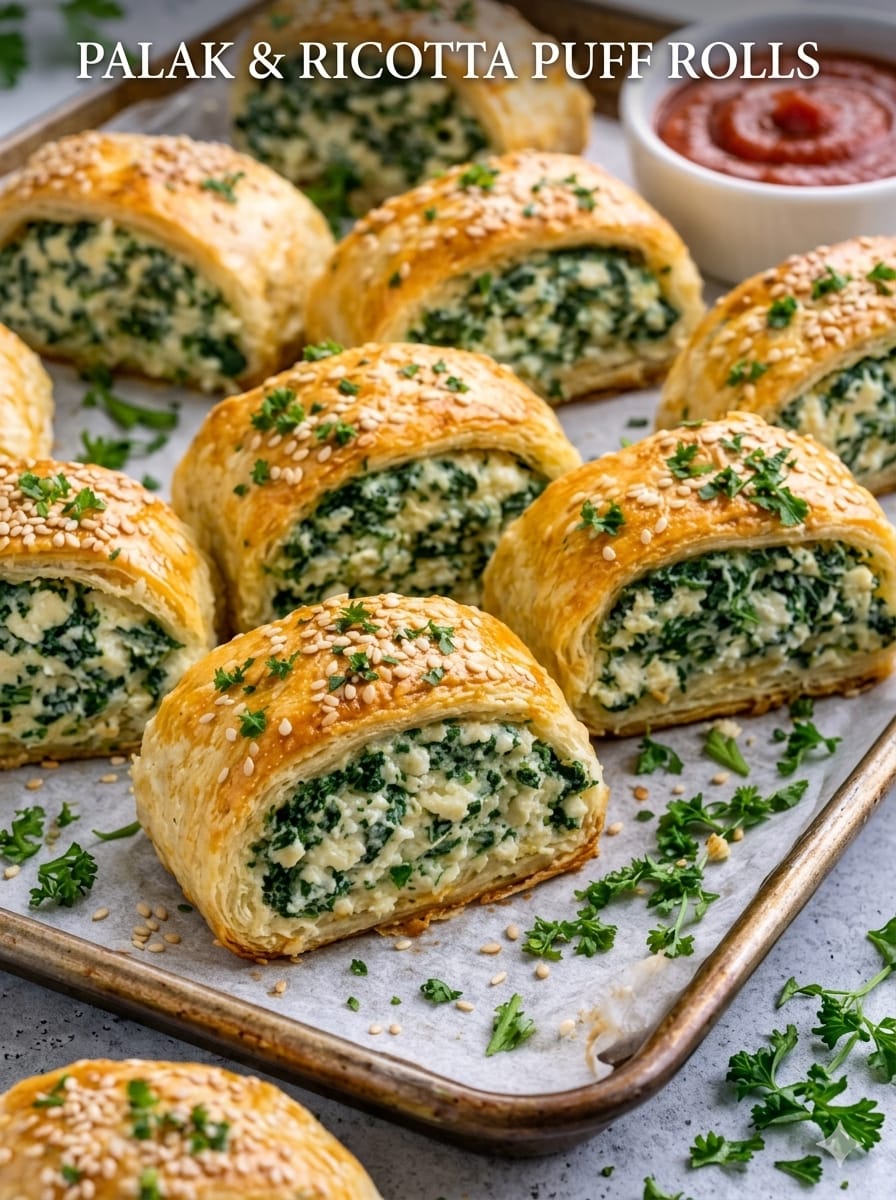 Palak & Ricotta Puff Rolls are a delicious fusion snack that combines the earthy flavor of spinach with creamy ricotta, all wrapped in flaky, golden puff pastry. These savory rolls are perfect as appetizers, tea-time snacks, or even light meals. With a crisp outer layer and a rich, cheesy filling, they strike the perfect balance between indulgent and wholesome. Best of all, they’re simple to prepare using store-bought puff pastry.