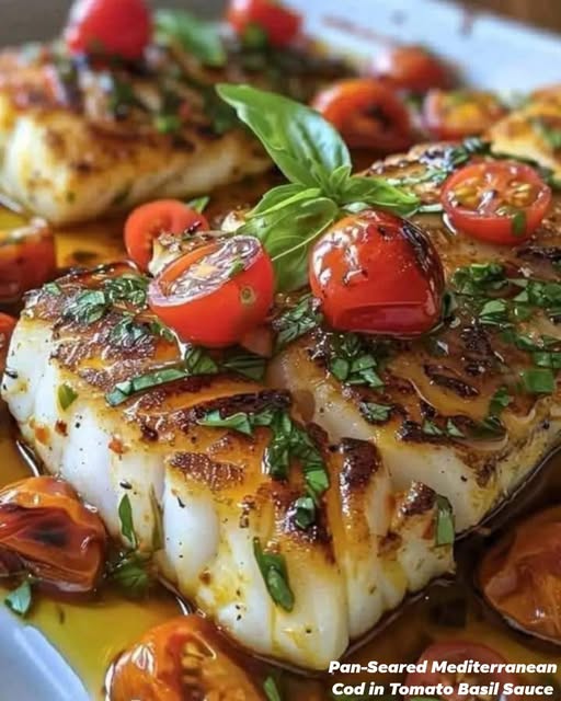 Pan-Seared Mediterranean Cod in Tomato Basil Sauce