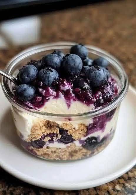 A creamy, crunchy, high-protein yogurt jar layered with blueberry compote, protein-packed Greek yogurt, and granola. Quick, refreshing, and perfect for grab-and-go mornings.