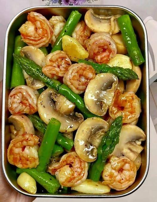 This Shrimp, Asparagus, and Mushroom Stir-Fry is a quick, healthy, and flavorful dish made in under 20 minutes. Juicy shrimp are sautéed with crisp asparagus and earthy mushrooms in a light garlic-soy sauce. Perfect for a weeknight dinner and delicious served over rice or noodles.
