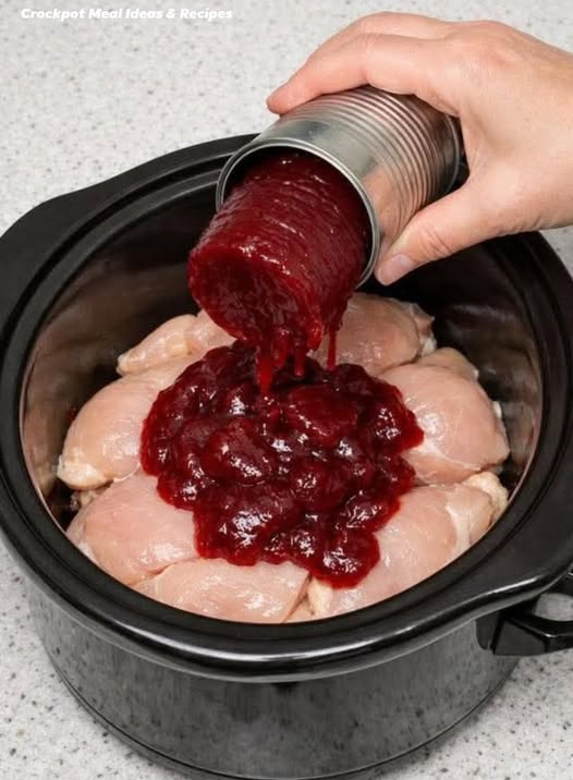This recipe transforms simple chicken breasts into a tender, glazed masterpiece. The sauce thickens as it cooks, creating a ruby-red gravy that is spectacular served over mashed potatoes, rice, or stuffing. It’s a classic “dump-and-go” slow cooker meal that appeals to both kids and adults.