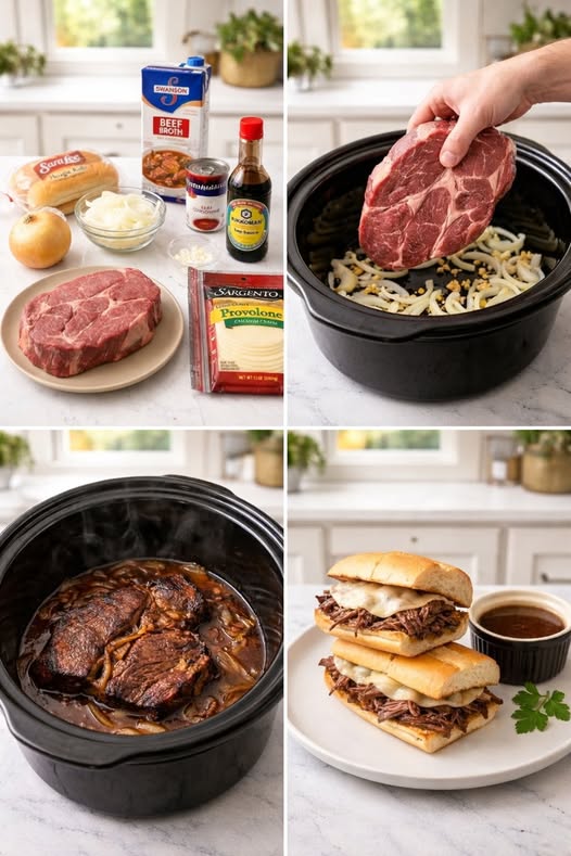4. Simmer: Cover and cook on Low for 8–10 hours or High for 4–5 hours until the beef shreds easily with a fork.