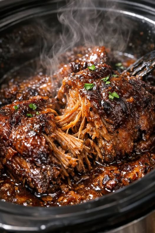 Serve: Toss the shredded beef back into the glaze or pour the glaze over the meat. Garnish with fresh parsley.