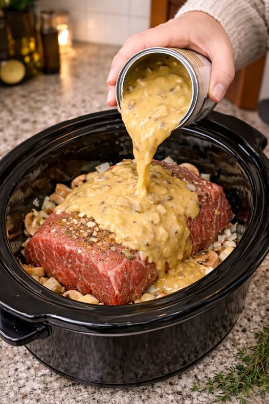 This recipe is the ultimate “set it and forget it” comfort food. By combining a lean chuck roast with savory cream of mushroom soup and fresh aromatics, you create a fall-apart tender meal that produces its own rich, velvety gravy. It’s a sophisticated twist on the classic pantry-staple roast.