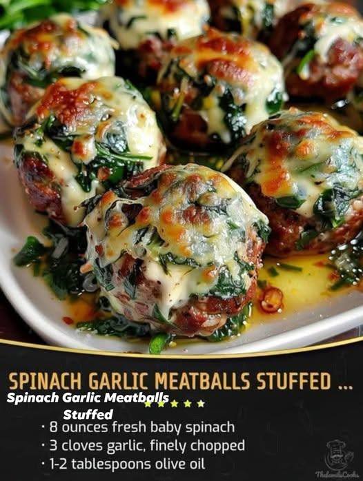 These aren’t your average meatballs. Imagine a tender, savory beef and pork blend that gives way to a molten, vibrant center of sautéed spinach, aromatic garlic, and gooey mozzarella. They are a sophisticated twist on comfort food, perfect for elevating a weeknight dinner or impressing guests at a party.